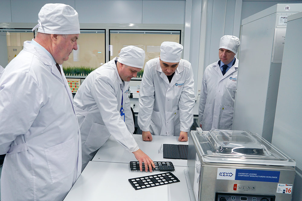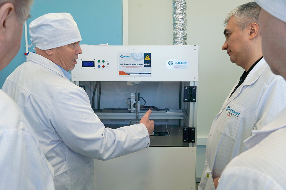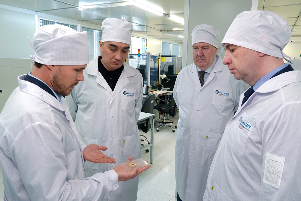 Программа визита была насыщенной, экскурсию провел генеральный директор НИИЭТ Павел Павлович Куцько. Он познакомил гостей с продукцией института, такой, как СВЧ-транзисторы на основе нитрида галлия, подчеркнув, что на данный момент институт является единственным в стране предприятием, серийно выпускающим полупроводниковые приборы по данной технологии, а также с линейкой новейших 32-разрядных микроконтроллеров архитектуры RISC-V для различных областей применения, разработанных с использованием субсидии по постановлению Правительства РФ от 24 июля 2021 года № 1252.