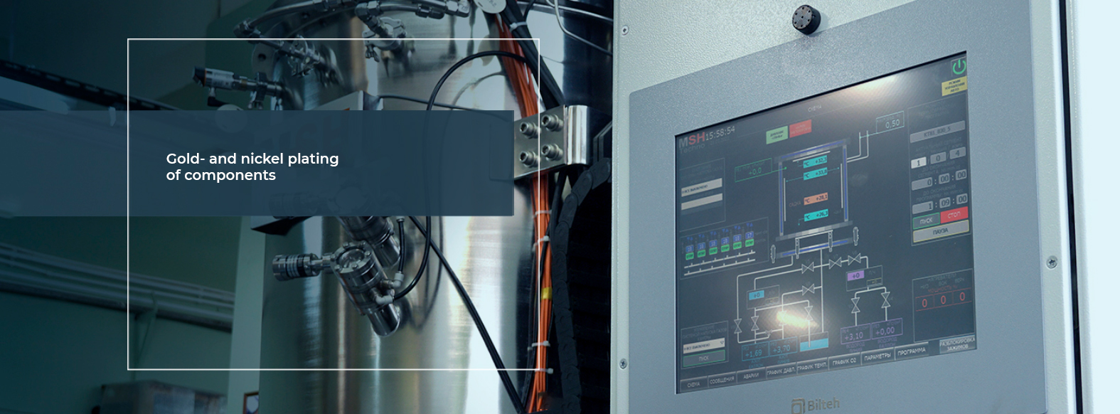 Galvanic gold plating of parts made of copper, brass, kovar (ferronickel), CuMo and CuW pseudoalloys (nickel-plated). The result is a clean, 99.99% gold plating with high corrosion resistance.